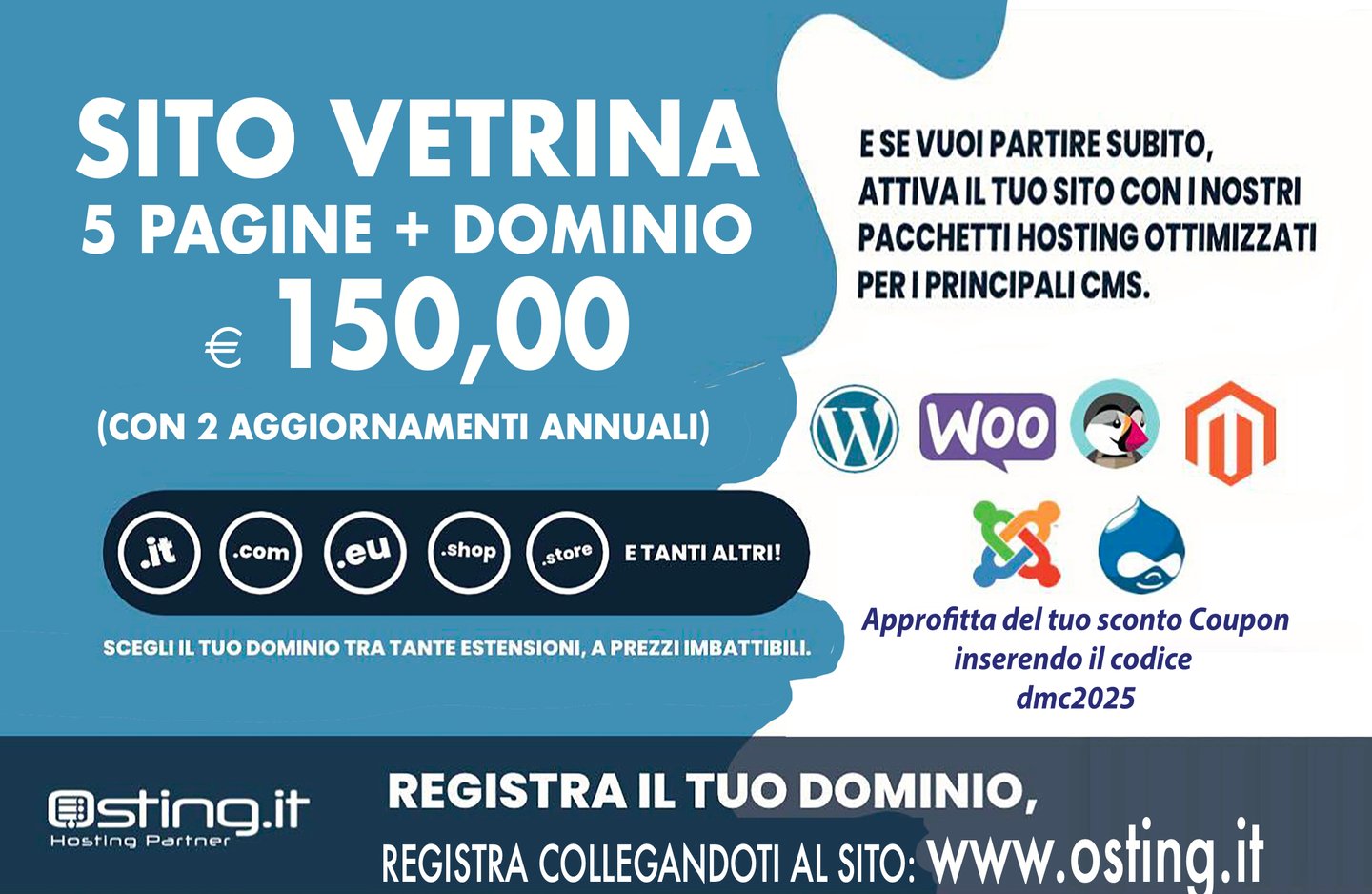 Affidati a osting.it per uno spazio web veloce e sicuro, perfetto per il tuo sito.